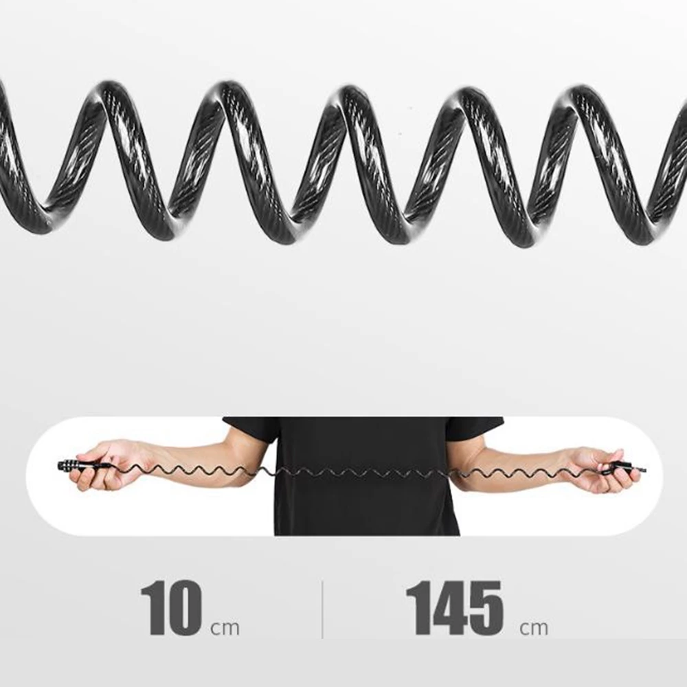 The lock is constructed with a metal inner body for durability and plastic-covered cable for resistance.